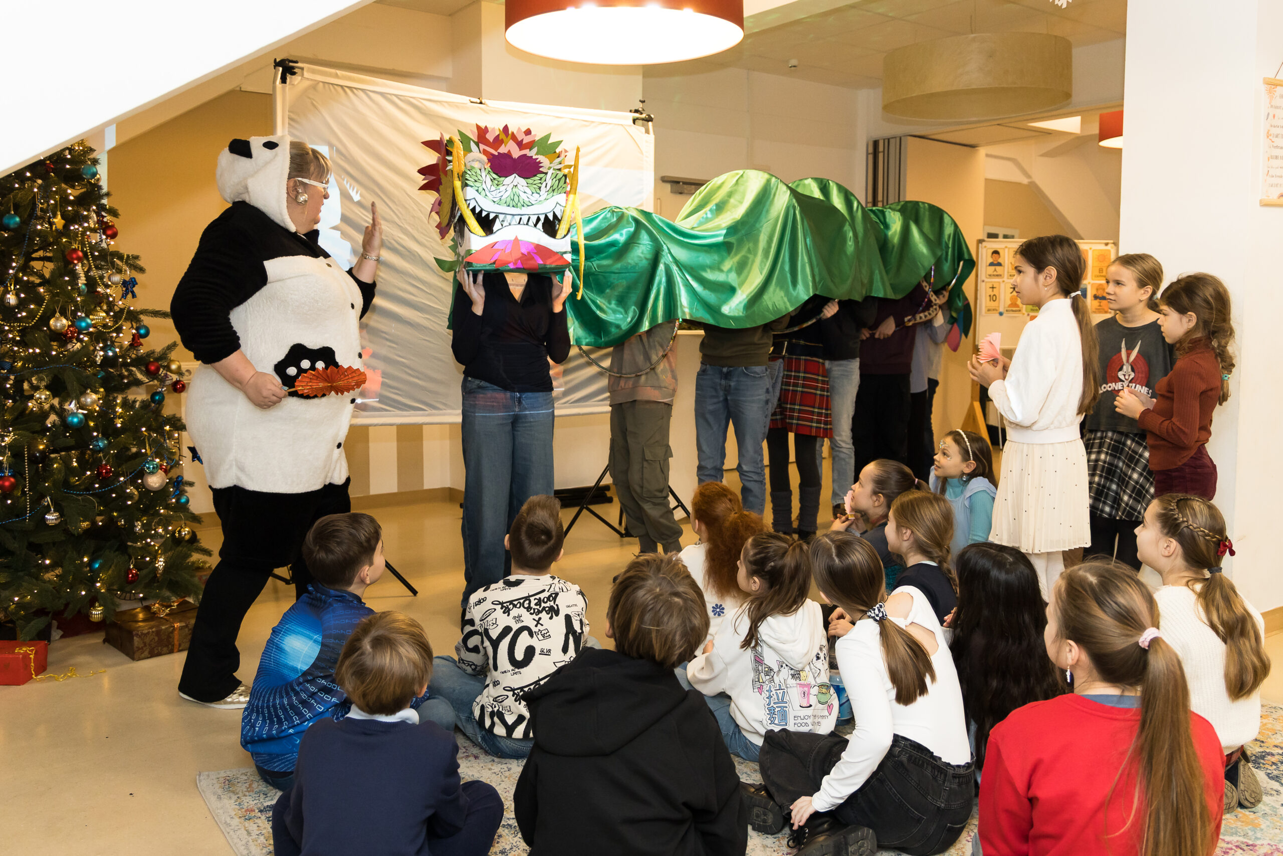 После спектакля дети вместе с учителями представили большой праздничный концерт с песнями, стихами и танцами. А главным сюрпризом и долгожданным гостем стал, конечно же, Дедушка Мороз! В школе воцарилась атмосфера настоящего волшебства и для детей, и для их родителей.