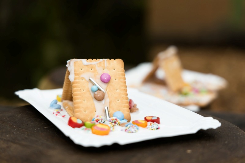 В конце праздника пили чай со сладостями, играли в снежки и мастерили домики из печенья.